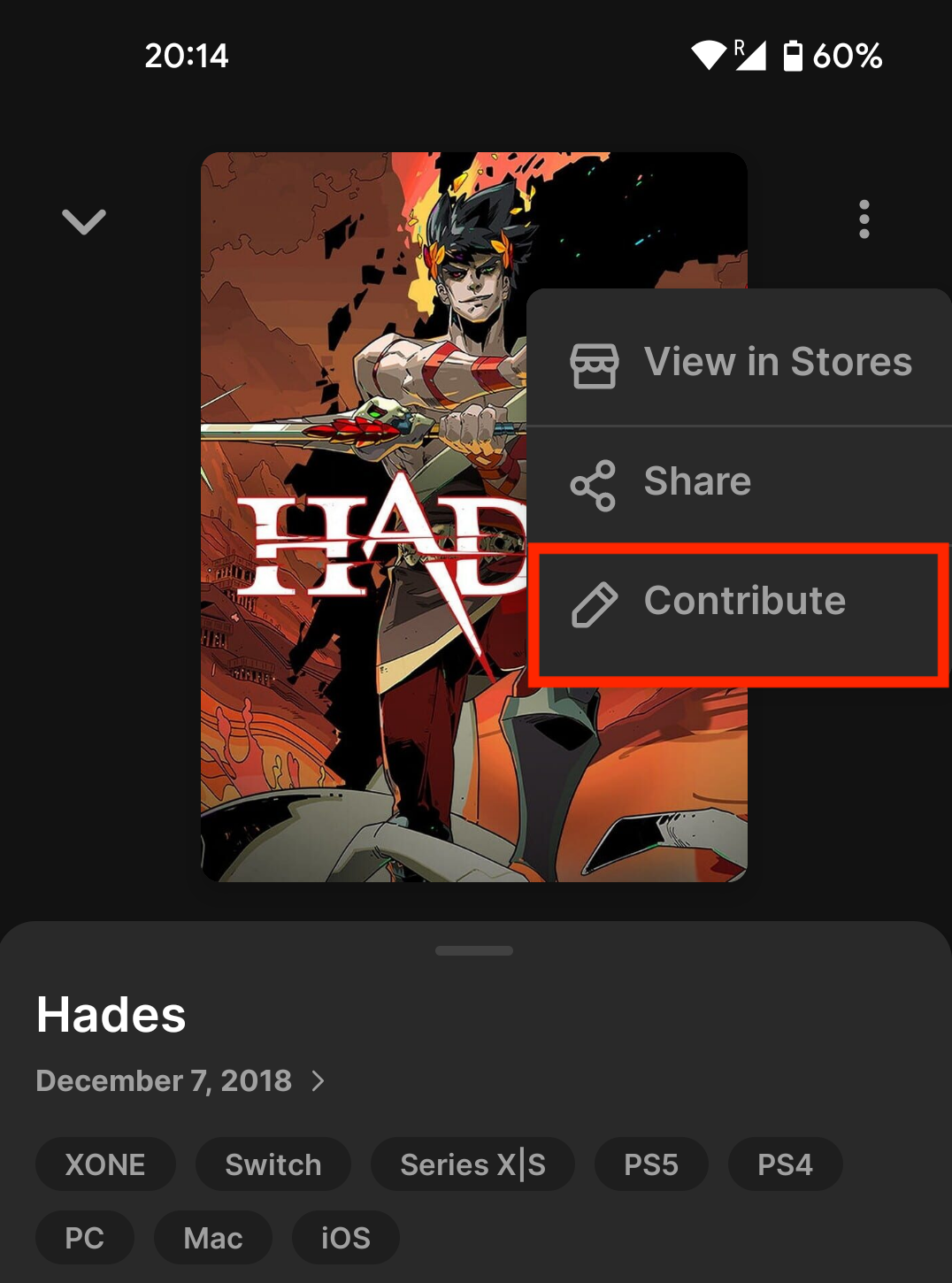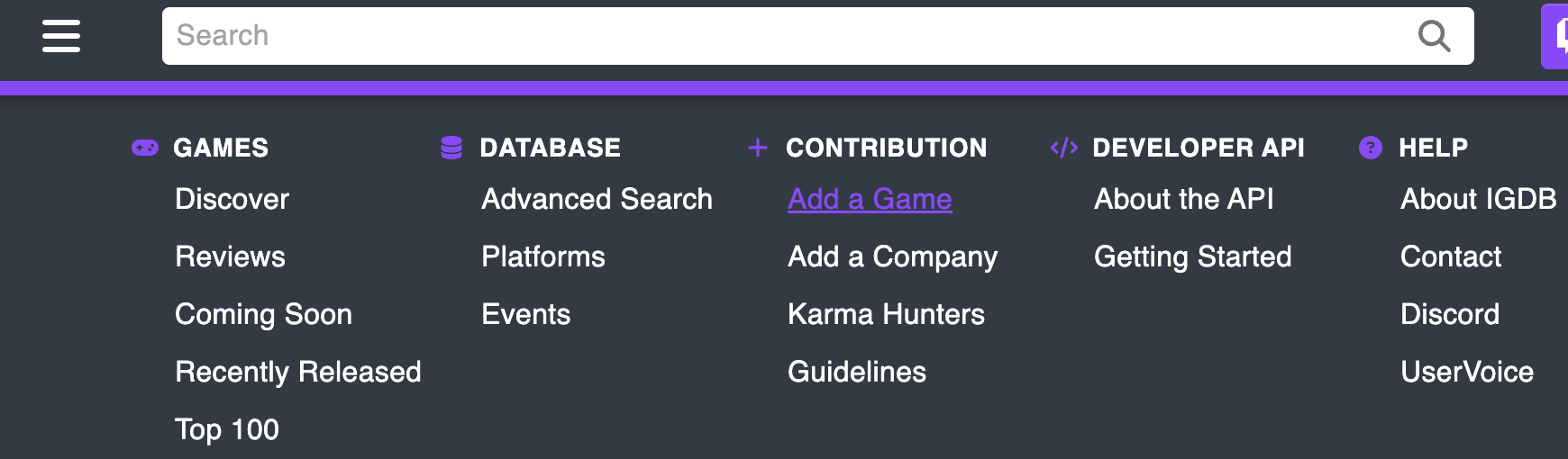 Also, to add a new game, you can go to the IGDB.com and select the appropriate section in the menu.